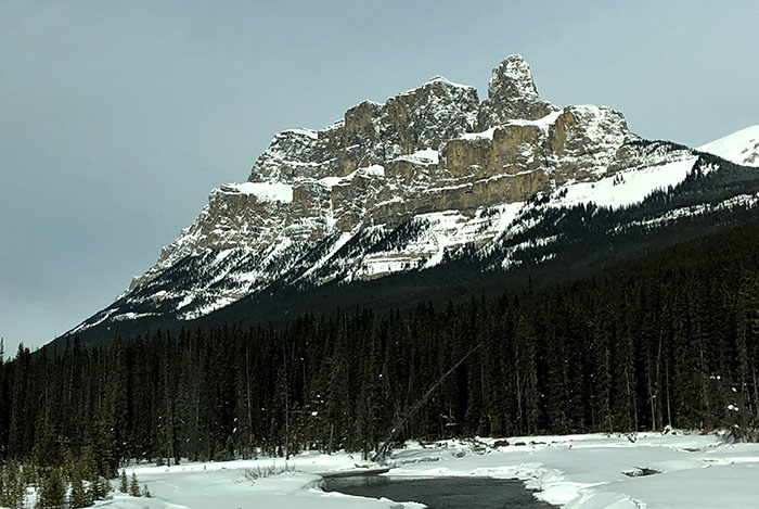Driving into the mountains felt like entering a totally different world. Those breathtaking snow and ice covered craggy heights rise out of a wilderness of conifers inhabited by many creatures, including bears and cougars... Individual mountains have their own names and character, like Cascade, Castle and Rundle that looks like a massive tilted blade. Andrew, who had climbed several of these peaks (as well as many others, including Everest), pointed them all out to us.
