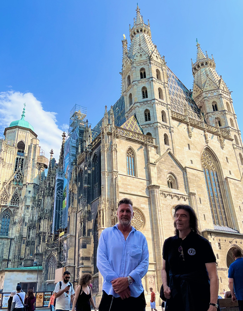 The first two shows were in Budapest and met with rapturous applause. We then drove to Austria, where Jo and I met up with Jonas Reingold, who showed us around Vienna, including the massive old cathedral. He joined the encore of the Djabe show, with some virtuoso blues playing. The crowd got to see two brilliant bass players that night!