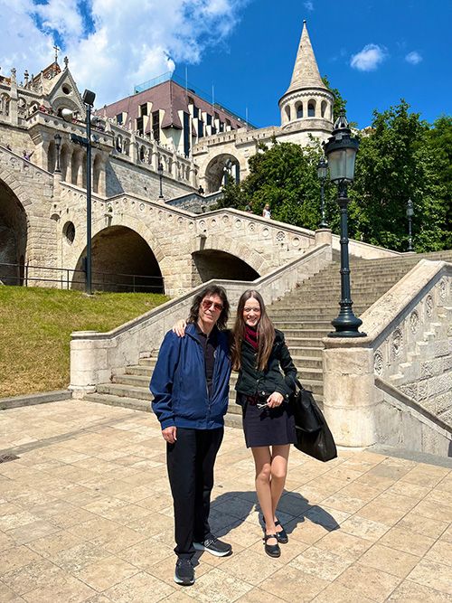 Initially we rehearsed in Attila's extraordinary cavernous semi underground studio, and enjoyed a fabulous barbecue in his garden. Jo and I also took a morning off with our pals Jane and Dan to visit the impressive historic Matthias Church and the incredibly spooky Labyrinth beneath Castle Hill, where natural caves weave between ancient cellars, deep wells and dank jails. Legend has it that Vlad the Impaler was imprisoned here and ghosts are believed to haunt the dark, winding passageways. It was fascinating, but we were glad to come back out into the sunshine!