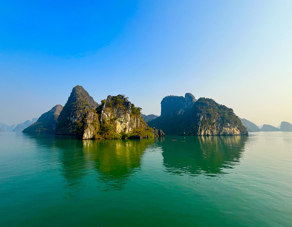 From stories of a dark time gone by to images of eternal sublime beauty, we visited spectacular Halong Bay. This must be one of the most stunning places on earth. The numerous limestone mountainous islands rising out of the bay fade into the mists and their rocky facades sparkle in the sunshine. As the boat weaved through these natural looming giants, we felt as if we were sailing through Eden itself, with many glimpses of the distinctly wild and primal virgin forests between and around the craggy peaks.